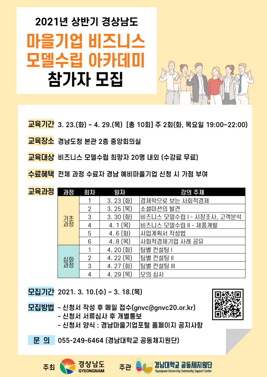 [홍보] 2021년 경남 마을기업 비즈니스 모델수립 아카데미 참가자 모집