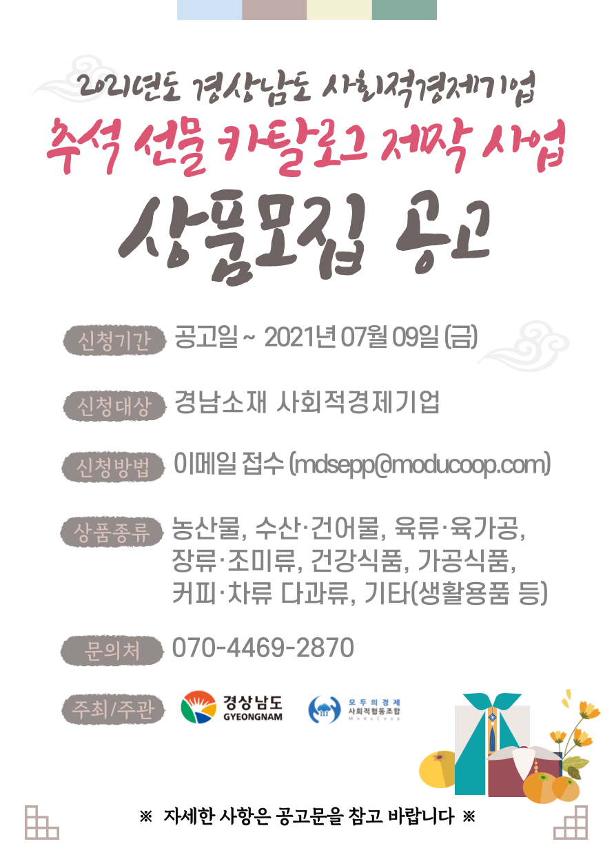2021년도 경남 사회적경제기업 추석 선물 카탈로그 제작 사업 상품모집 공고